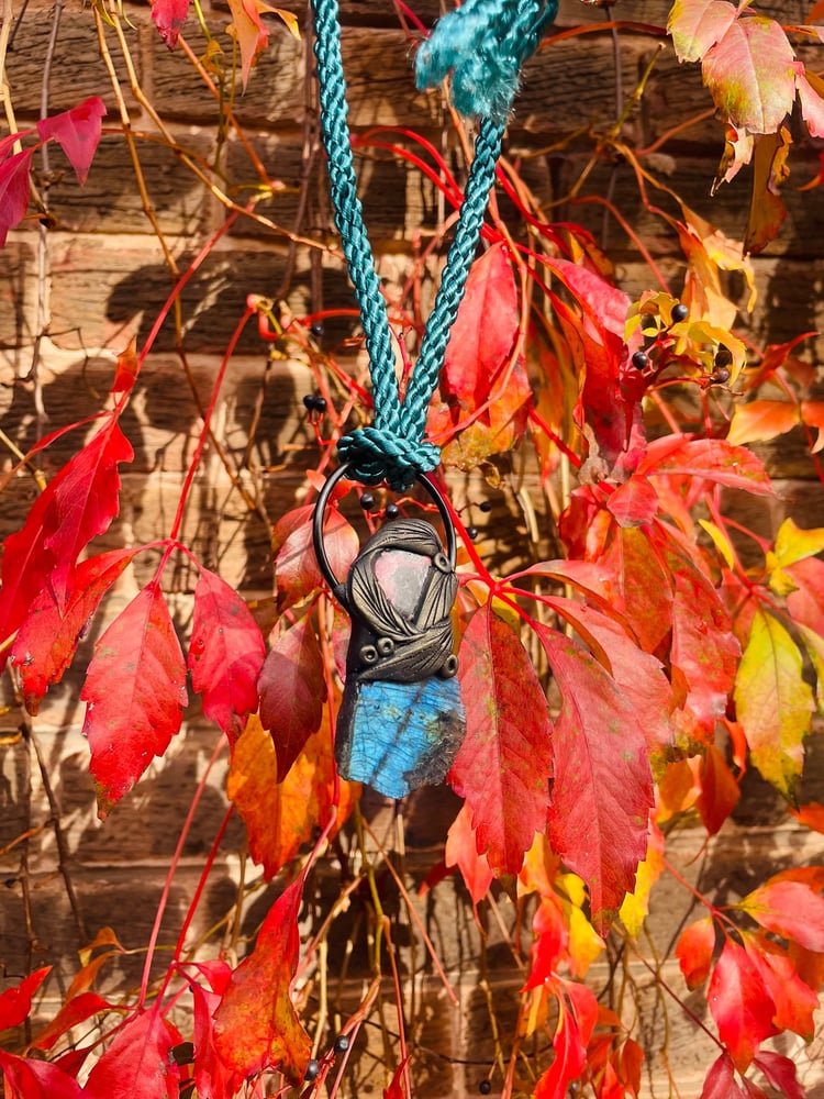 This beauty will come reiki blessed & cleansed. Hanging on a teal silk thick rope necklace