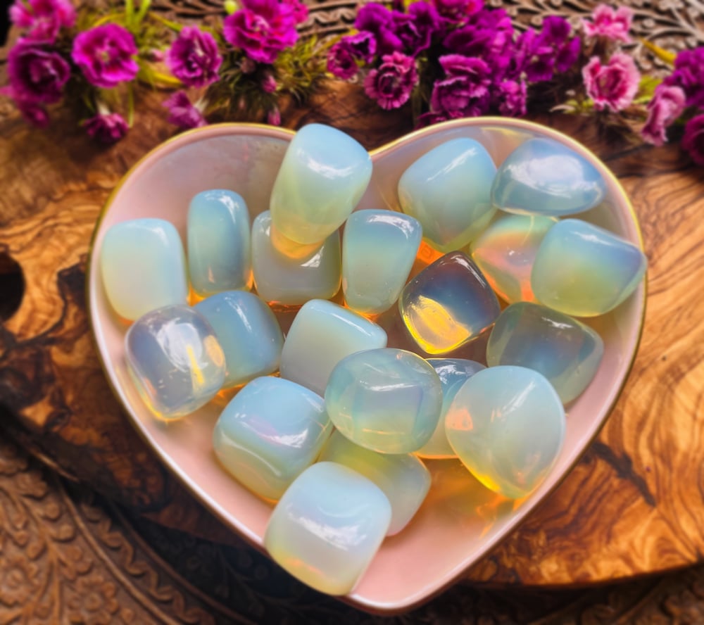 Opalite improves communication on all levels, especially the spiritual. It removes energy blockages of the chakras and meridians. Emotionally, Opalite helps by assisting during transitions of all kinds. It engenders persistence and gives us strength in verbalising our hidden feelings